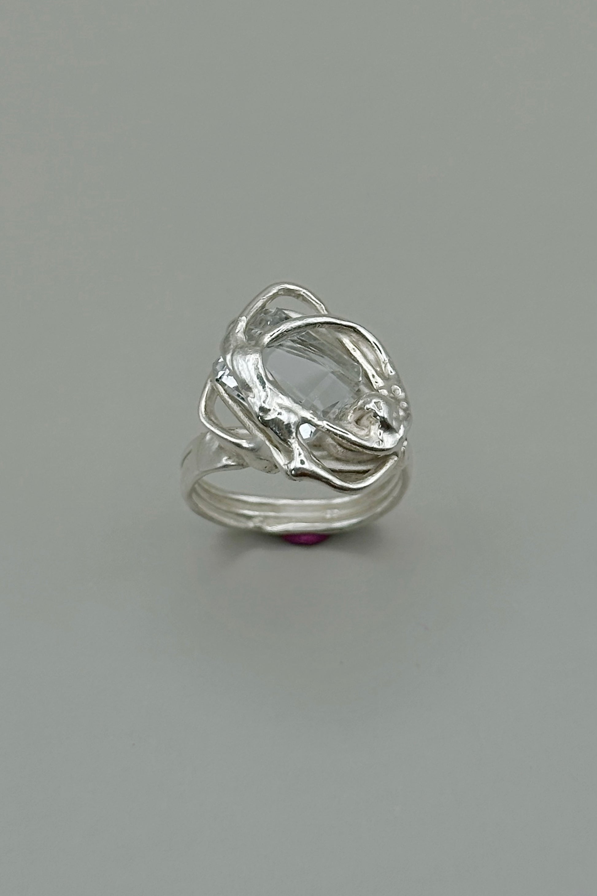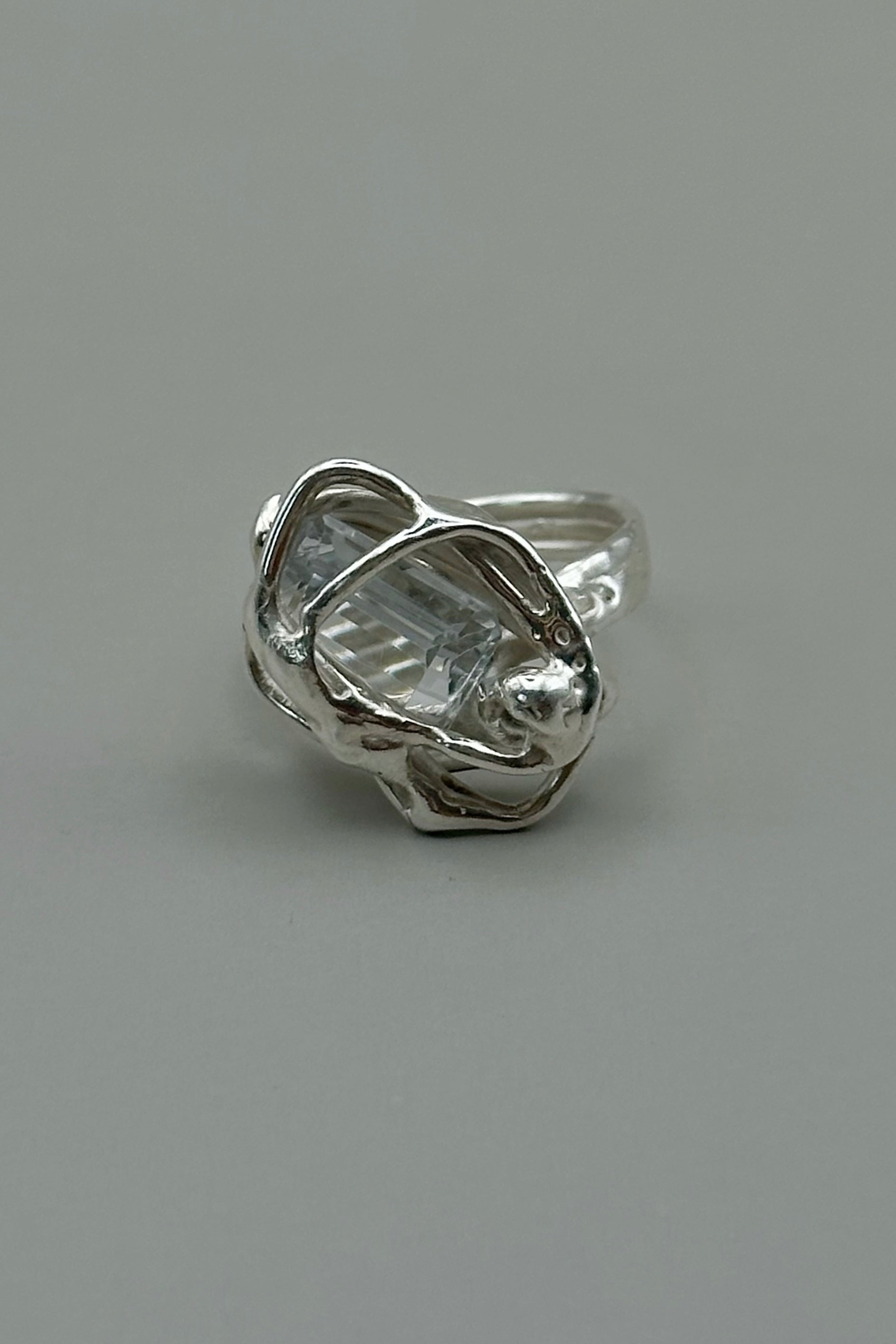 This one-of-a-kind ring is made of sterling silver with a natural blue topaz. It is available in size 56EU and ready to ship.