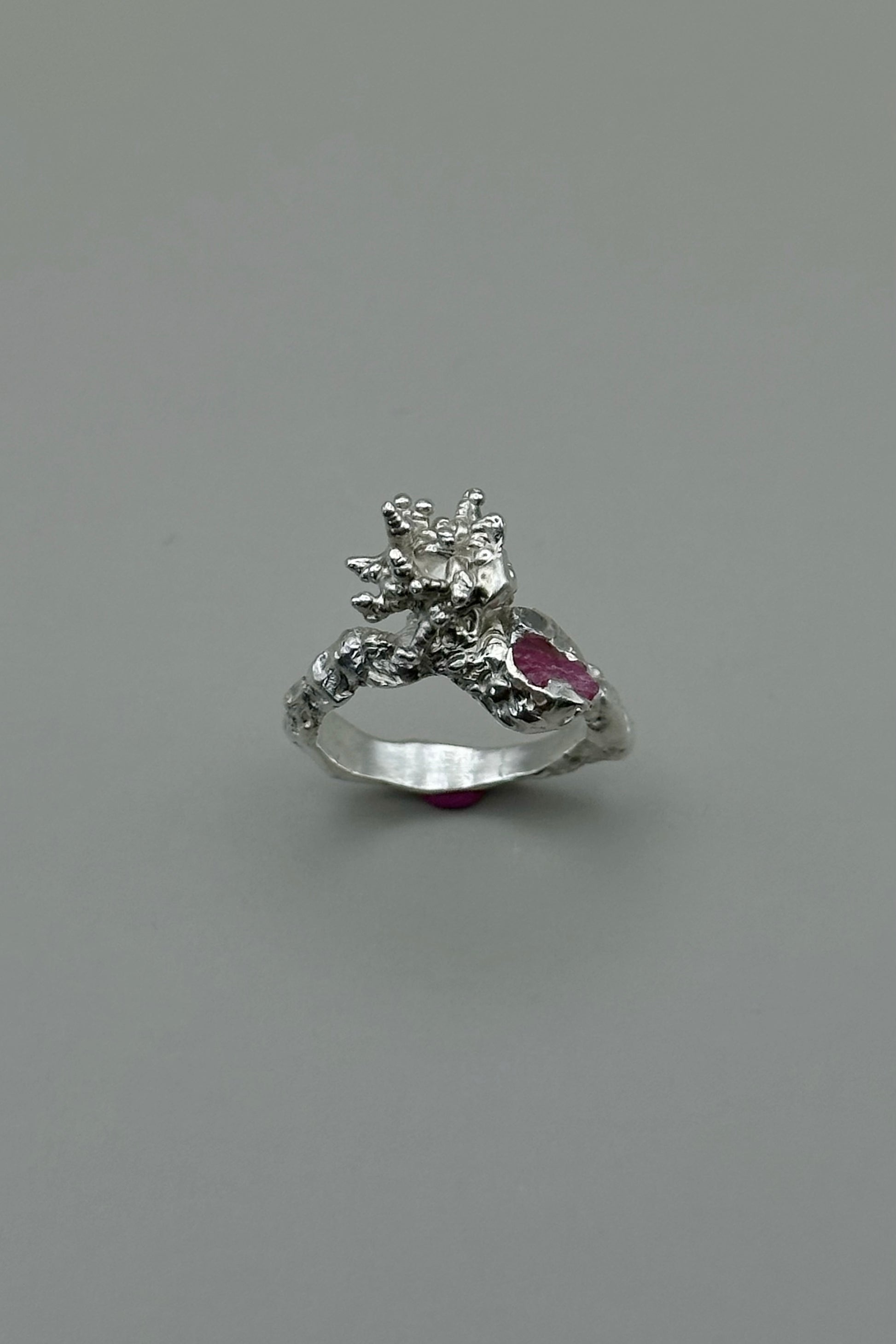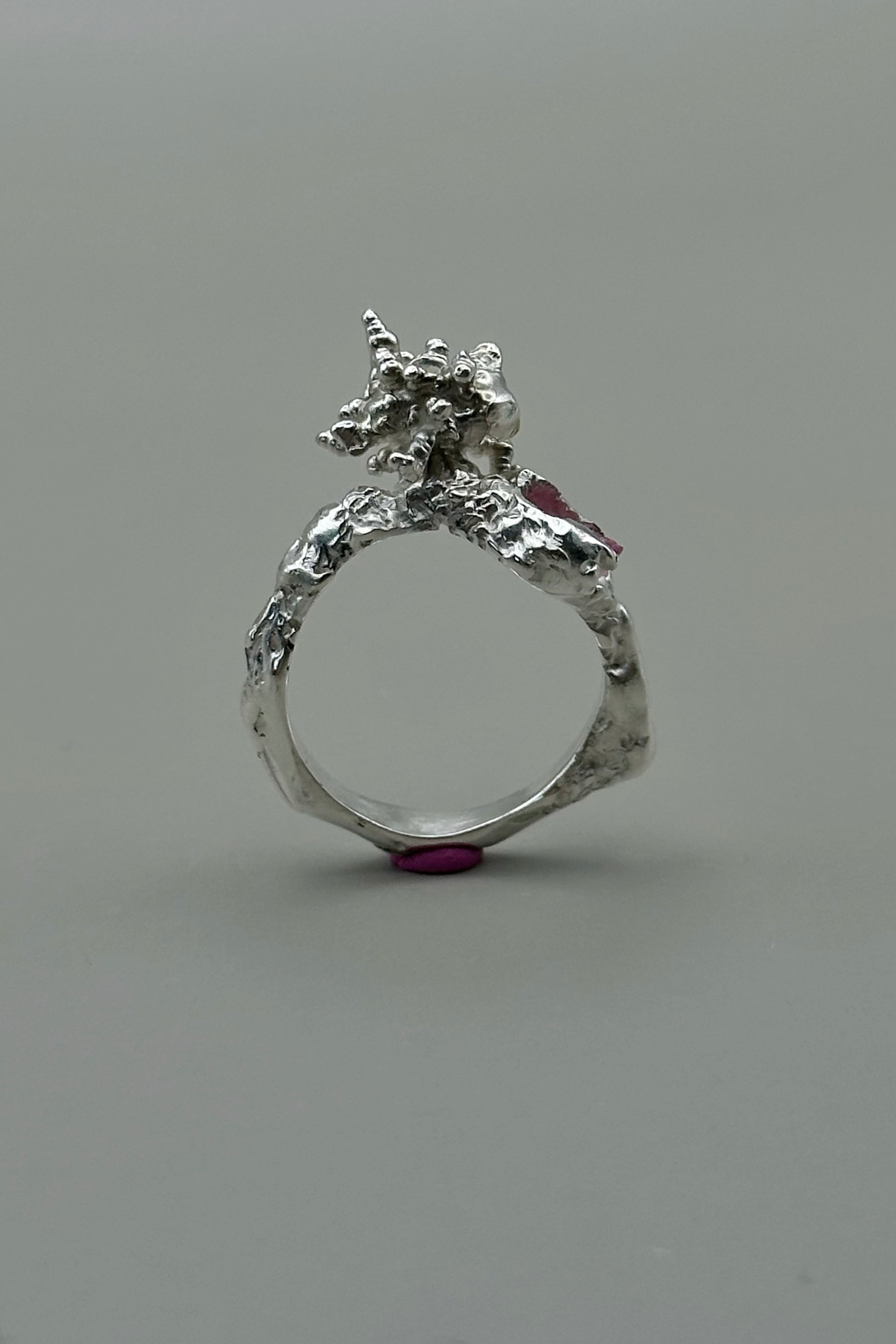 This one-of-a-kind ring is made of sterling silver with a natural pink tourmaline. It is available in size 50 EU and ready to ship.
