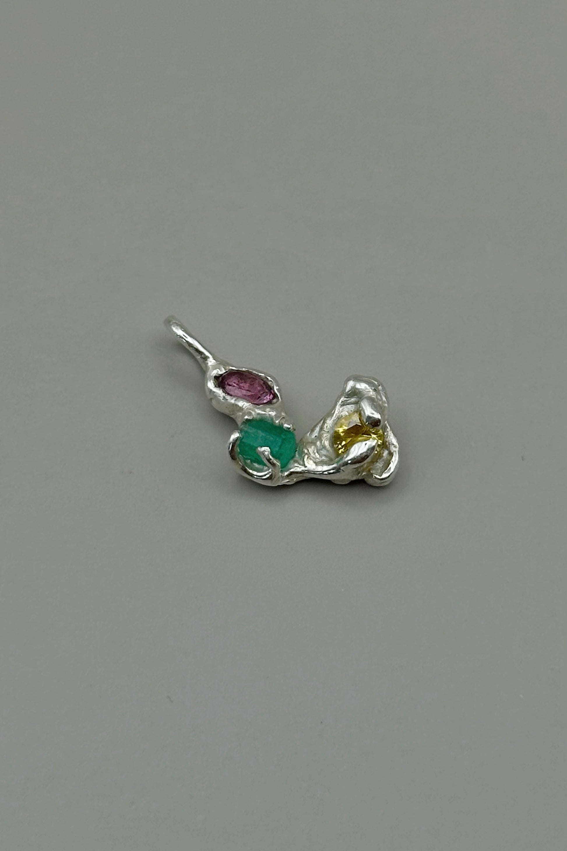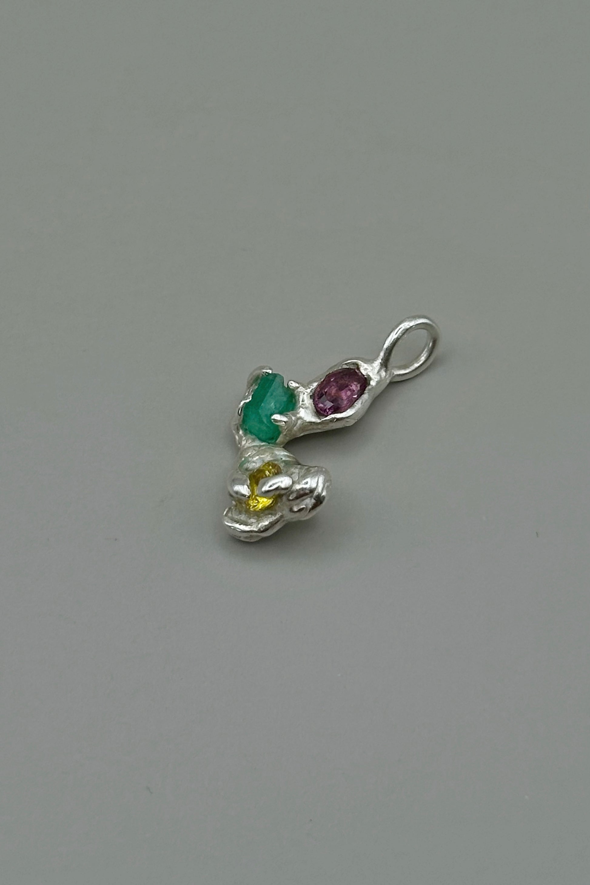 Forbidden fruit pendant with Rhodolite, Raw Emerald and Yellow Cubic Zirconia. This item is ready to ship.