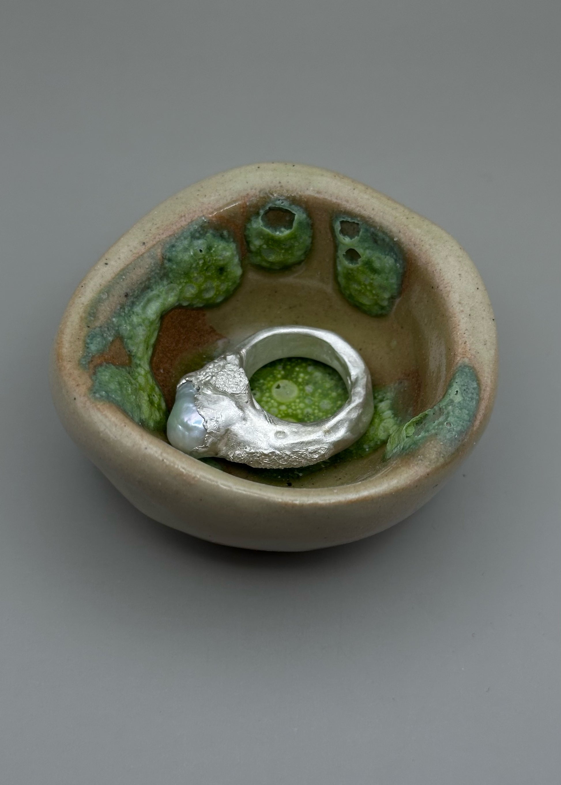 This one-of-a-kind ring is crafted from sterling silver and features a baroque pearl. It comes with a unique ceramic box handmade by odt.33. The ring is available in size 53 EU and can be resized up to size 55. Please add a note with your purchase if you would like it to be resized. It’s ready to ship.